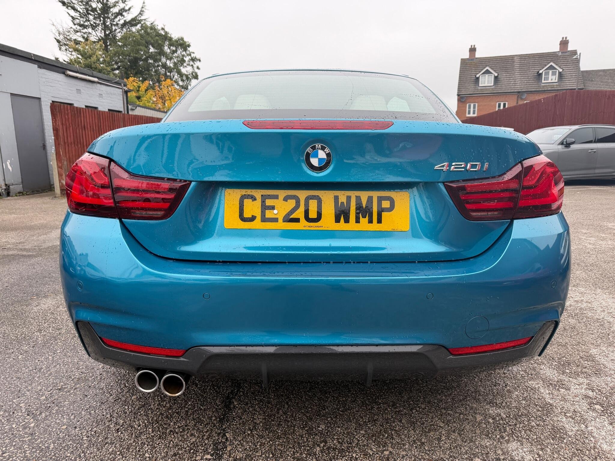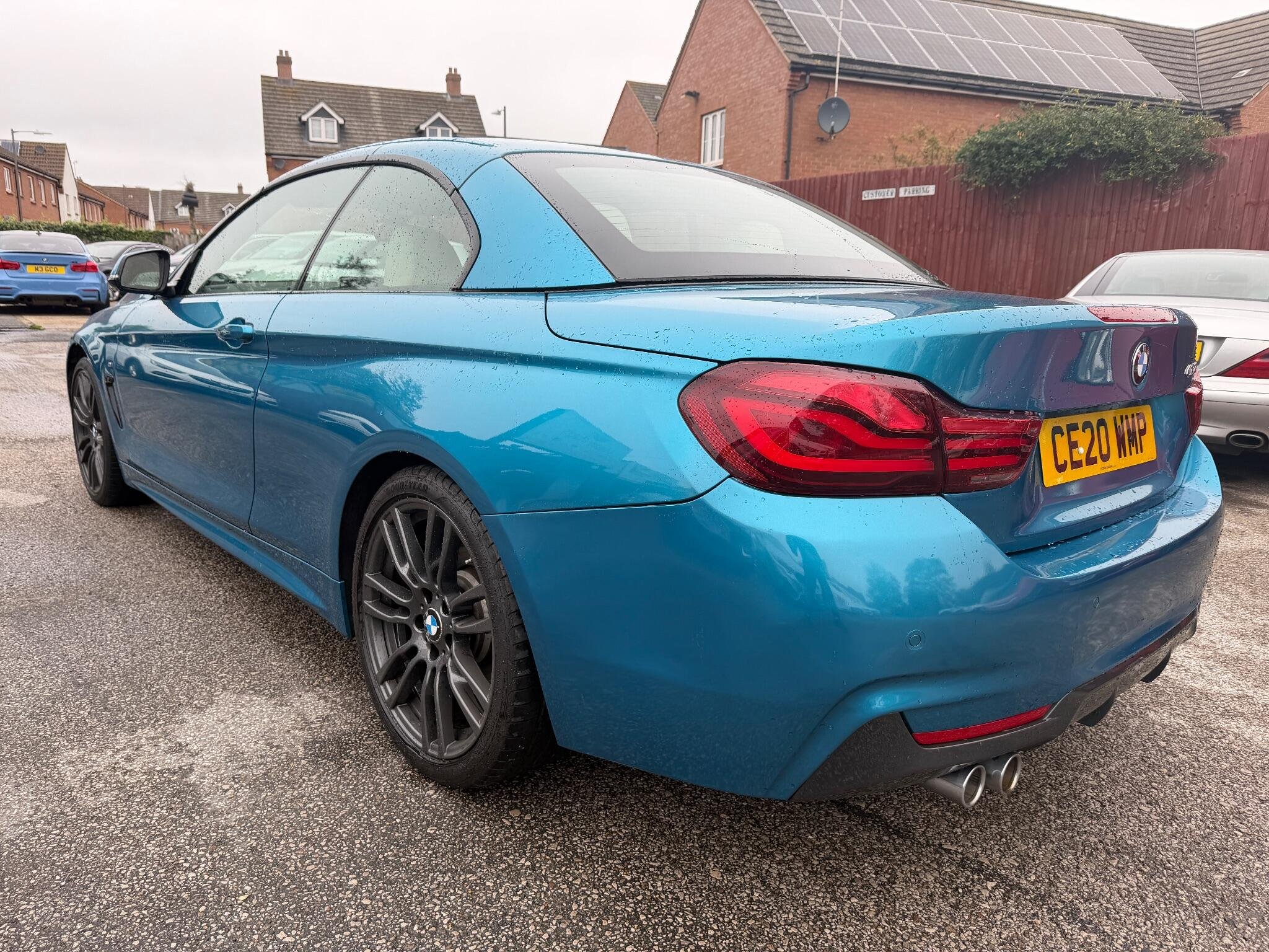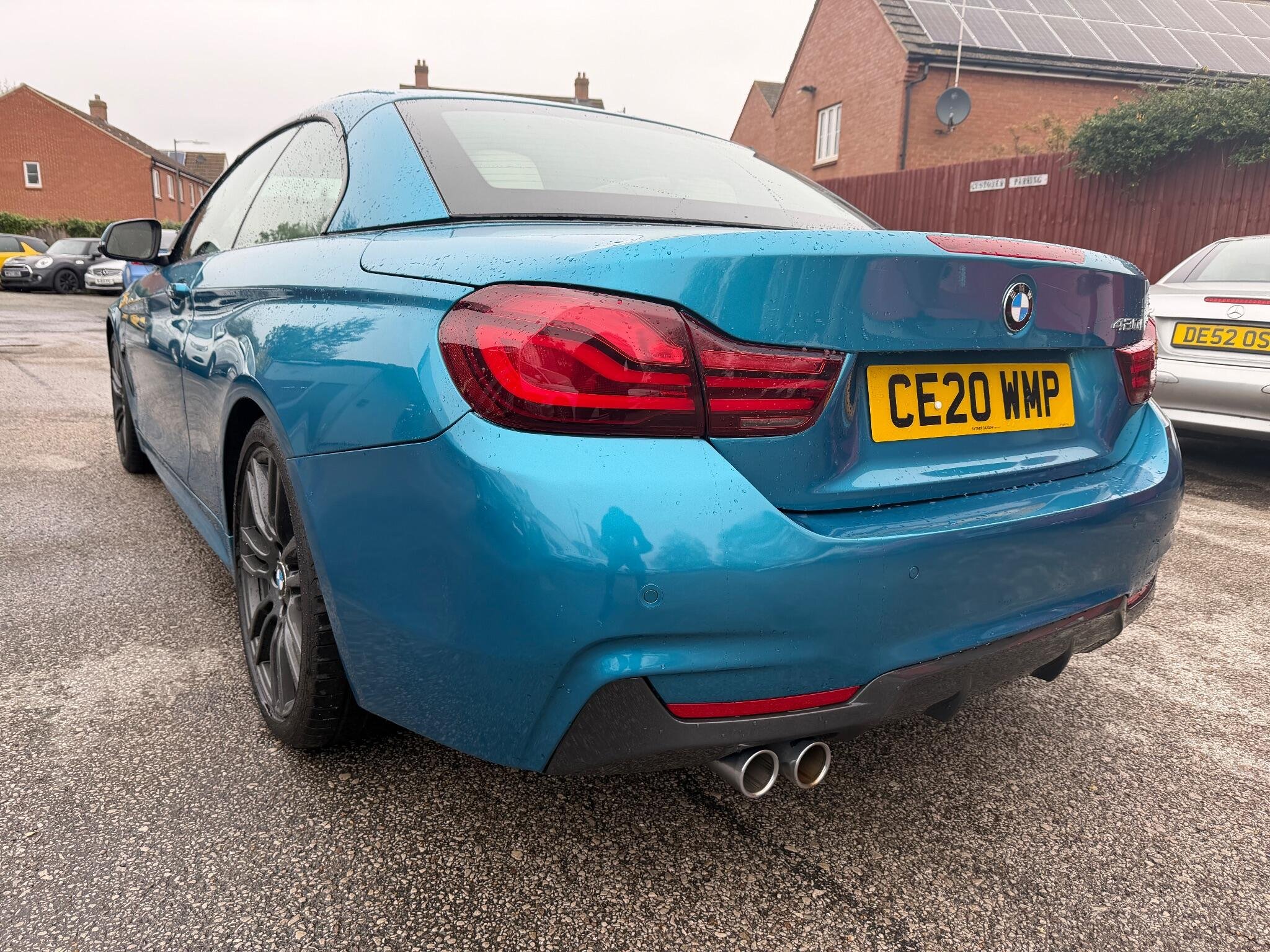 Full BMW Service History, Covertable Comfort Package, Naviagtion, Sports Gearbox, Warranted Low Mileage, HPi Clear, Spare Key Full BMW Service History, Navigation, Heated Seats and Neck Scarf, Parking Sensors, Warranted Low Mileage, HPi Clear, Spare Key This 2020 BMW 4 Series 420i M Sport convertible presents an exceptional opportunity with its remarkably low mileage of just 19,000 miles. This Euro 6 compliant model boasts a 2.0 litre petrol engine and is finished in the sporty M Sport trim. It features striking 19 inch M Star Spoke alloy wheels, a premium Harman Kardon loudspeaker system for an immersive audio experience, and the Convertible Comfort Package which includes a heated steering wheel for those cooler drives. Inside, the cabin is enhanced by Fineline Anthracite wood trim with a sophisticated pearl chrome highlight, further complementing the heated steering wheel. The low CO2 emissions for this vehicle highlight its efficiency, making it a more environmentally conscious choice within its class. The combination of the powerful yet economical 2.0 litre engine, the luxurious M Sport appointments, and the advanced sound system clearly sets this BMW 4 Series apart from other similar vehicles. This particular example offers a compelling blend of performance, comfort, and advanced features, all presented with very low mileage for its age. -